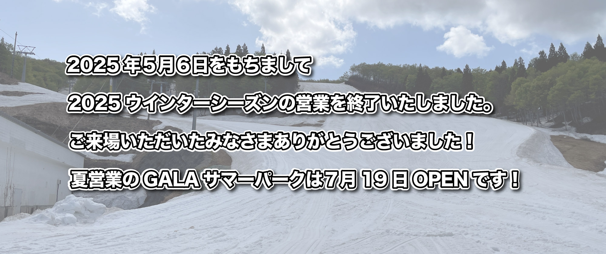 2025年5月6日をもちまして2025ウインターシーズンの営業を終了いたしました。