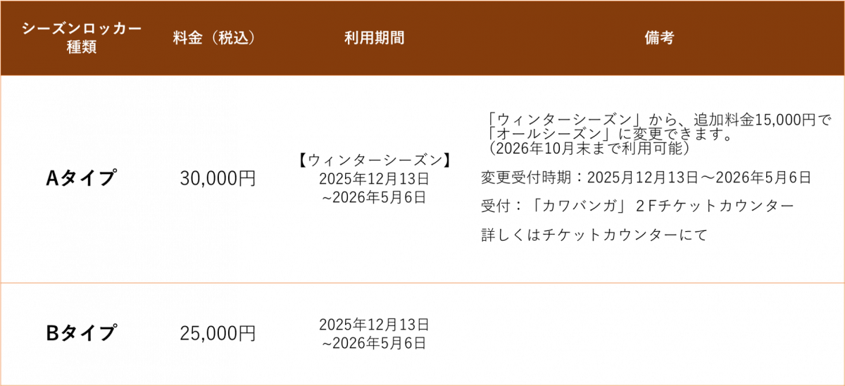 希望使用季節儲物櫃的所有顧客
